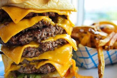 Were talking juicy patties with classic toppings wrapped up in wax paper. One of the BEST burgers I have ever had. Were a fan of the double cheeseburger but if thats somehow not enough go for a triple or even a quadruple patty burger.