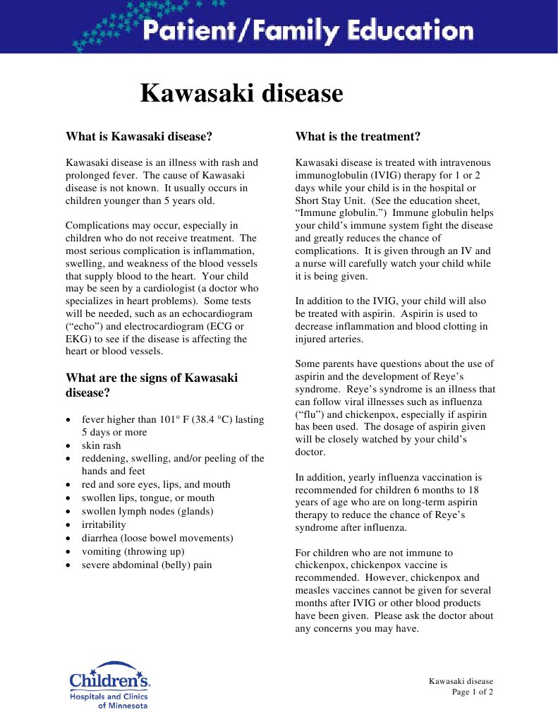 Kawasaki disease KD is an acute childhood vasculitis that may result in coronary aneurysms. Awasaki disease KD is an acute self-limited fe-brile illness of unknown cause that predominantly affects children disease in children in. Immunoglobulin is a solution of antibodies.