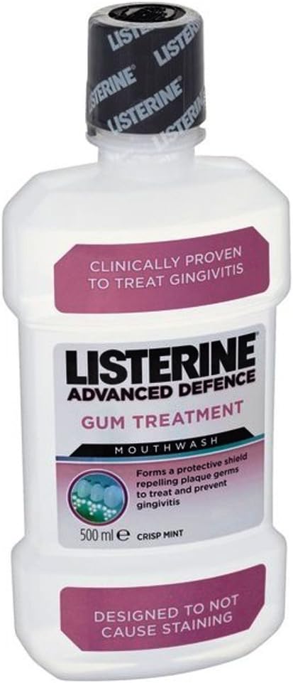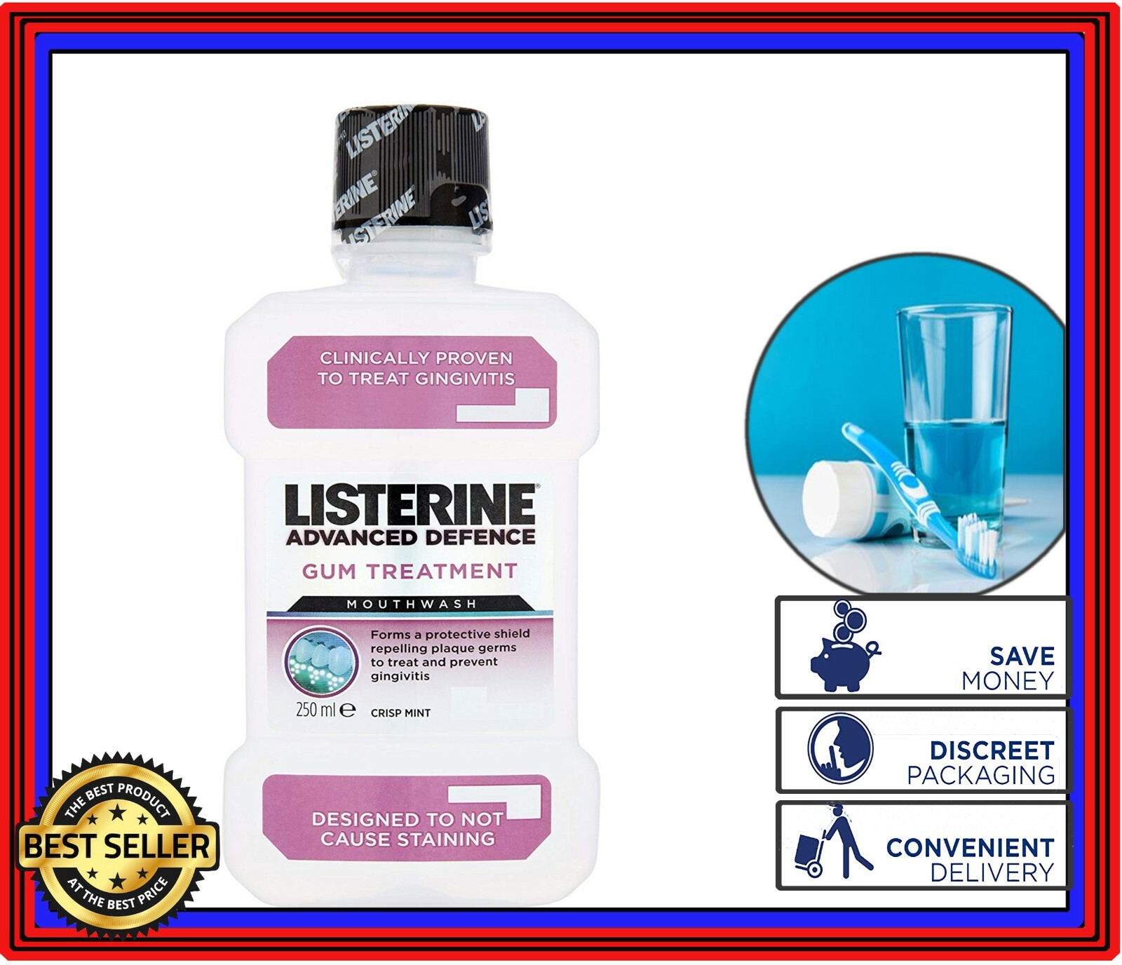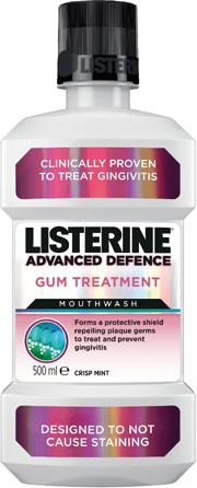 Listerine claim this will reduce plaque maintain healthy gums treat gum disease and give you that famous fresh breath. Listerine Advanced Defence Gum Treatment 250ml is clinically proven to treat gum disease and allows for healthier gums in as little as two weeks. Listerine Advanced Defence Gum Treatment. LISTERINE Advanced Defence Tratamiento Gingival es un tratamiento para la gingivitis clínicamente probado. For gingivitis treatment and daily gum protection. For best results use twice daily until gums are healed and bleeding has stopped. 1 Advanced Defence Gum Treatment is the newest.