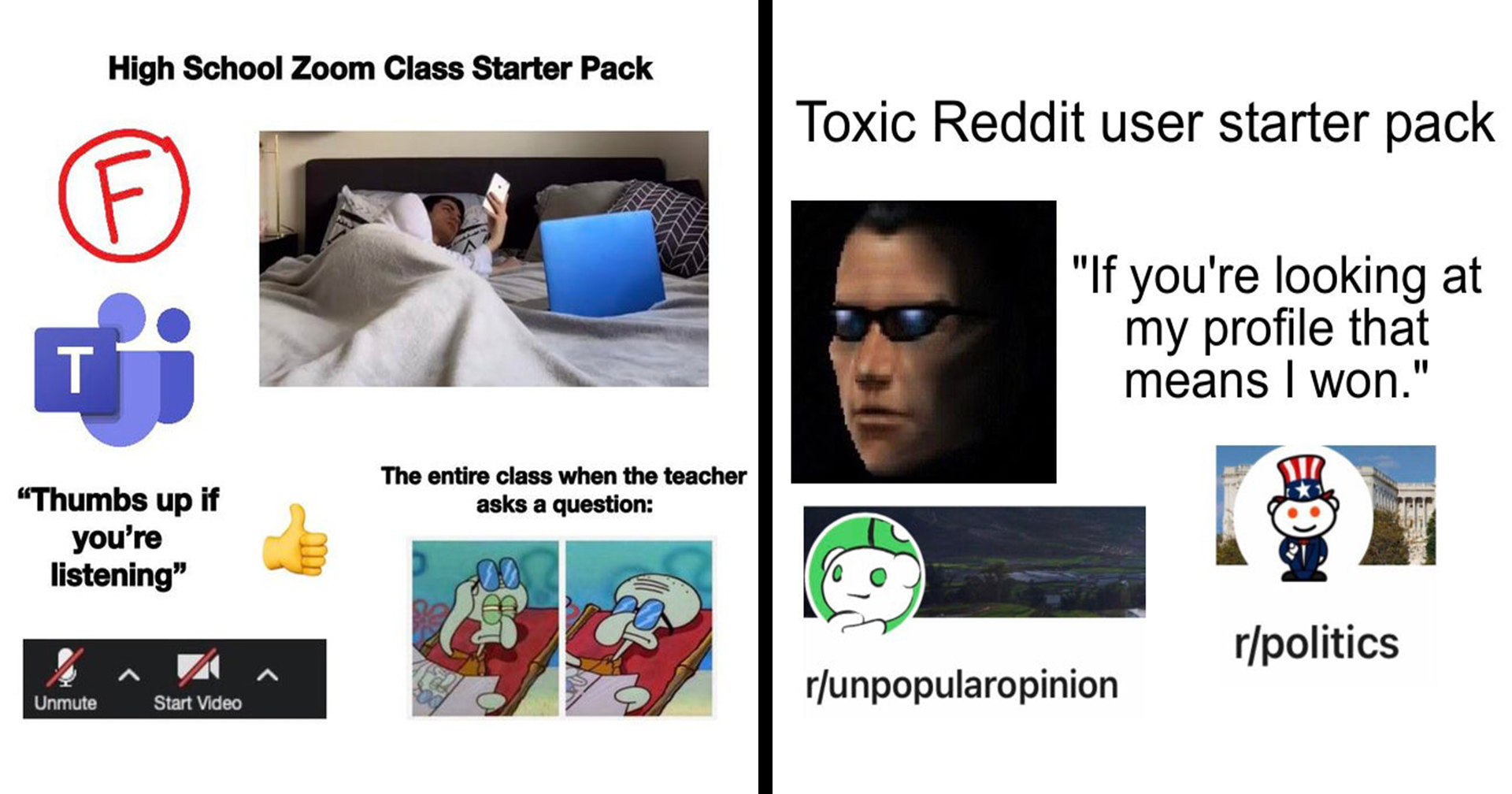One could say that starter pack memes stayed relatable was because it can be about anything.