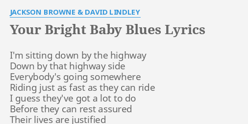 Provided to YouTube by Elektra AsylumYour Bright Baby Blues Jackson BrowneThe Pretender 1976 ElektraAsylum Records for the United States and WEA Internat. Your bright baby blues Jackson Browne Capo II E Im sitting down by the highway A E A E Down by that highway side A Everybodys going somewhere E A E Riding just as fast as they can ride B I guess theyve got a lot to do Cm A Before they can rest assured E B A Their lives are justified E Pray to God for me baby A E B. Turn down your radio. C Everybodys going somewhere G C G Riding just as fast as they can ride. You watch yourself from the sidelines. Your Bright Baby Blues Lyrics. If you like the Your Bright Baby Blues lyrics by Jackson Browne you may also like some of the following lyrics.