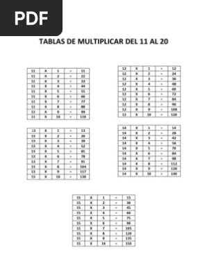 Repasa las tablas de multiplicar del 10 del 11 y del 12 y haz las series de cada una. Podrás encontrar todas estas fichas en formato PDF o DOC para que puedas descargarlo de forma gratuita e imprimirlo. Tablas del 11 y del 12 Abre la.